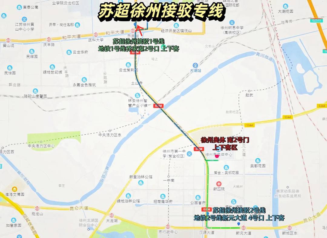 具体线路如下:苏超徐州接驳1号线:地铁1号线乔家湖地铁站-奥体中心南2号门;