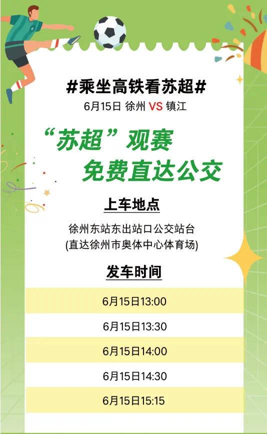 2025年江苏省城市足球联赛激战正酣!6月15日,徐州主场迎战镇江,超燃对决一触即发!徐州公交集团推出“苏超”三重“大礼包”,让球迷无忧观赛,免费畅游彭城。